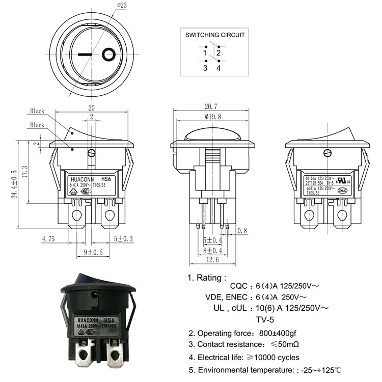 船型開關 HS6-Y1-6-04Q100-BB03