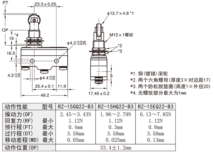 RZ-15GQ22-B3 面板安裝式滾輪柱塞型