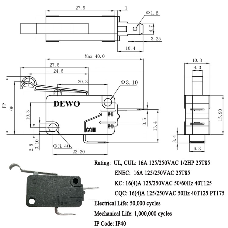 Terminal type:187 quick connect terminal/250 quick connect / Solder terminal/ left side PCB terminal/ right side PCB terminal/ Screw terminal