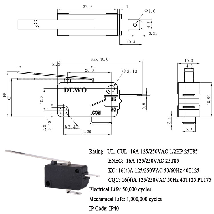 Terminal type:187 quick connect terminal/250 quick connect / Solder terminal/ left side PCB terminal/ right side PCB terminal/ Screw terminal
