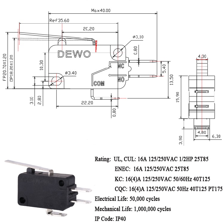 Function: SPDT/SPST-NO/SPST/NC