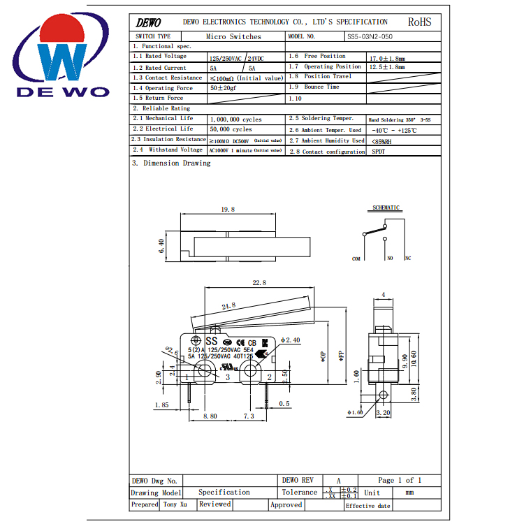 Function: SPDT/SPST-NO/SPST/NC