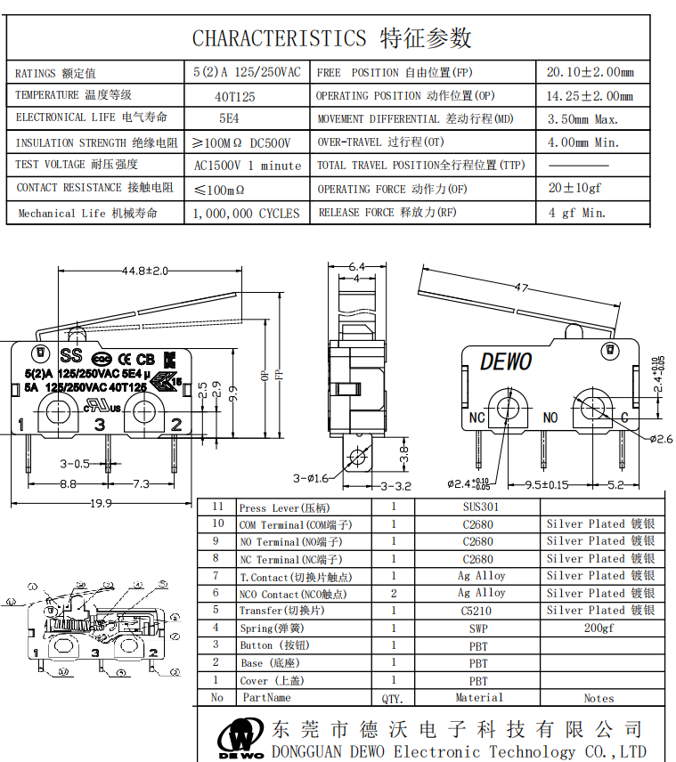 Mechanical life:1,000,000 cycles
