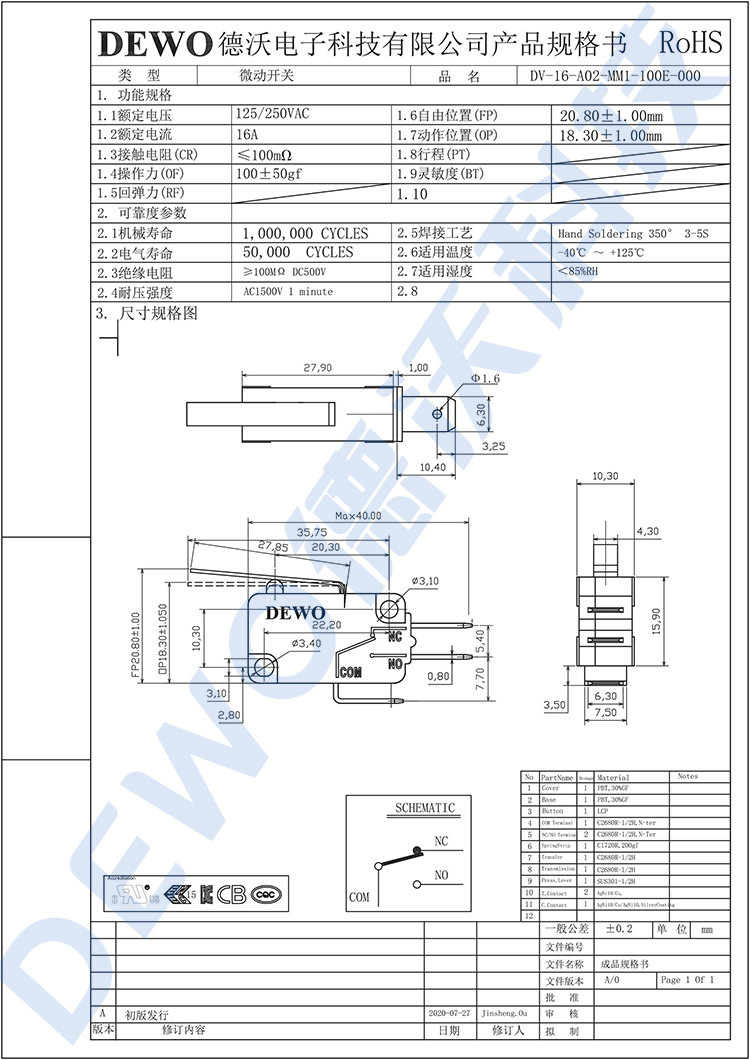 DV-16-A02-MM1-100E微動開關(guān)
