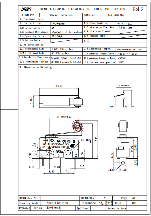 SS5-05N1-050微動開關