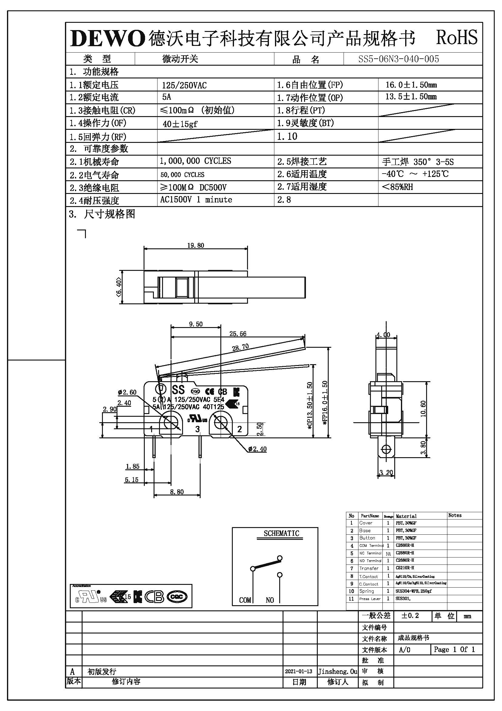 SS5-06N3-040微動開關(guān)