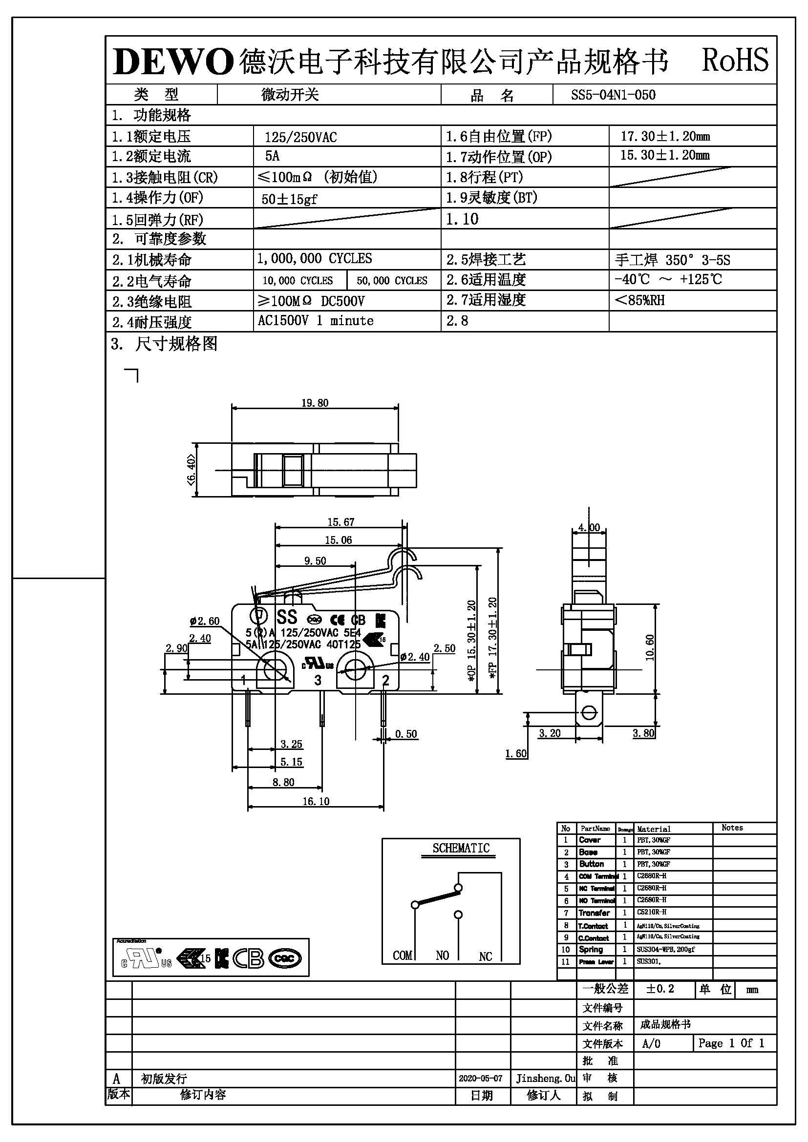 SS5-04N1-050 微動開關