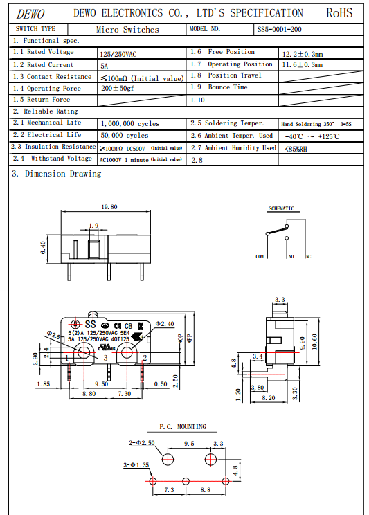 SS5-00D1-200微動開關