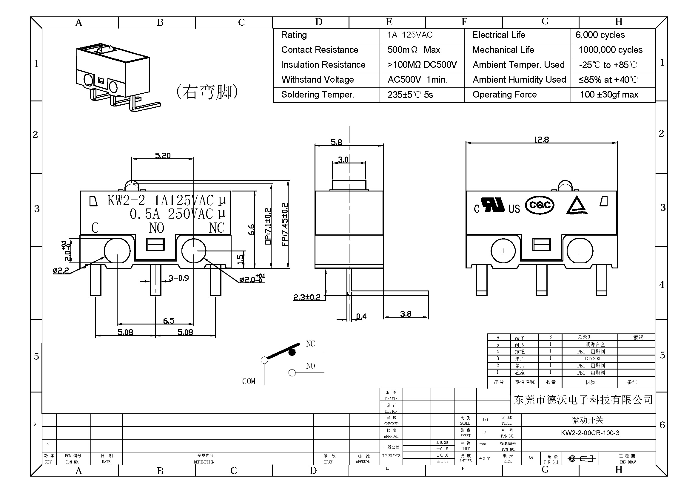 2.觸點材質:銀鎳合金.